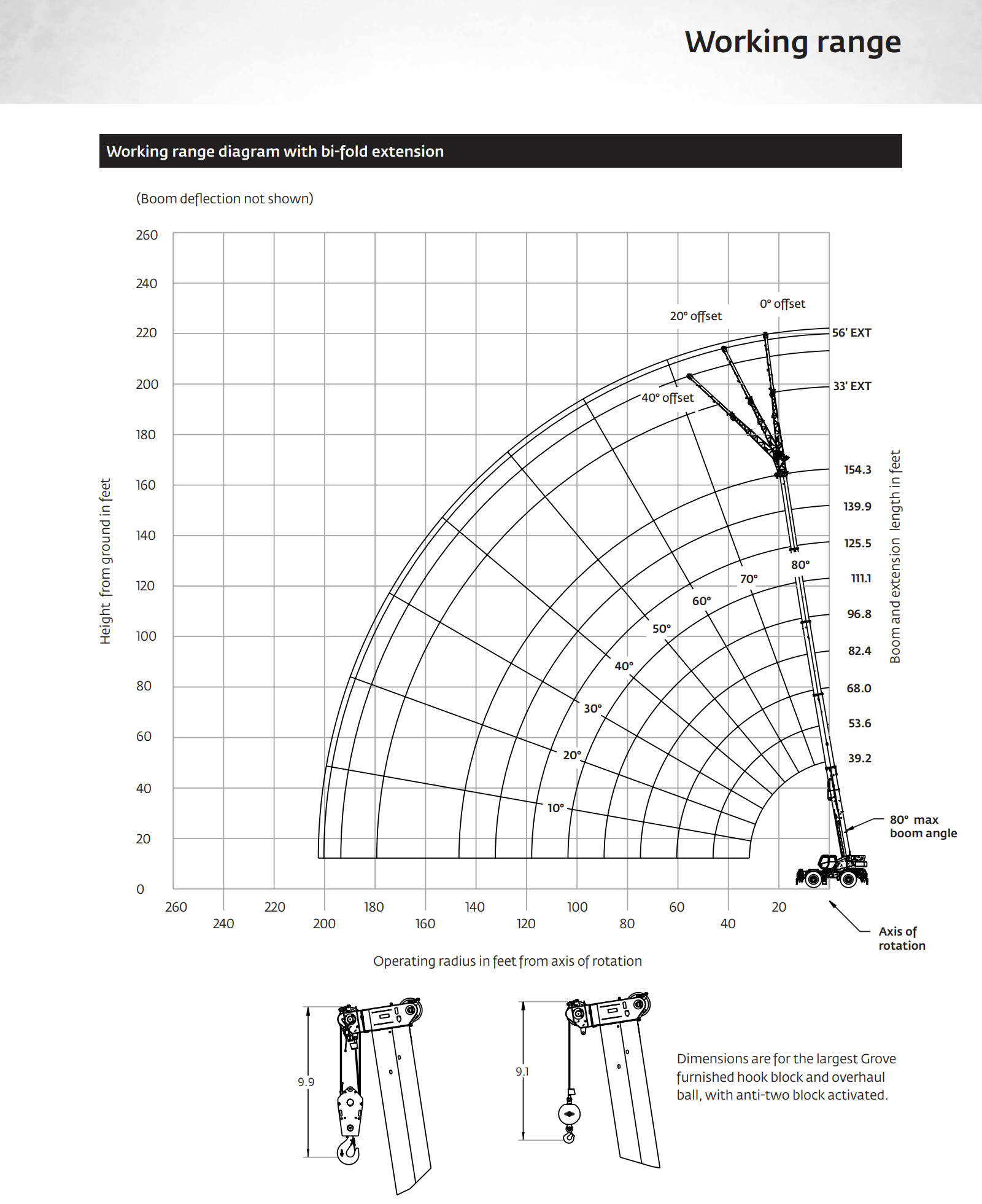 Longitud de la pluma principal de cinco secciones 12 m - 47 m (39.2 ft -154.3 ft)